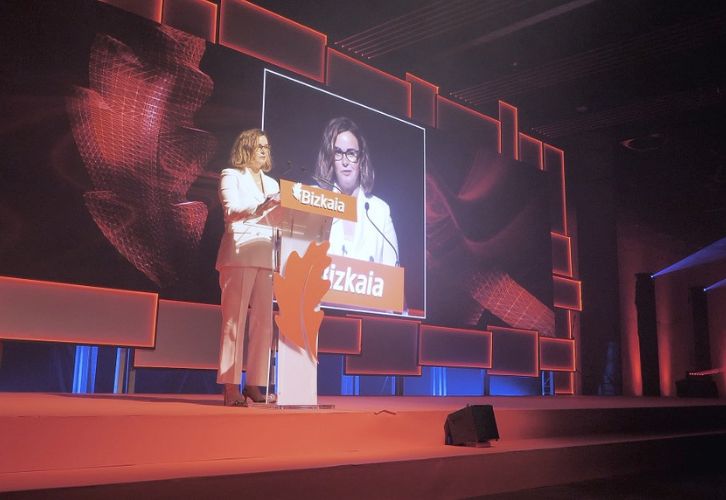 Estuvimos en la presentación de Biqain. La Diputada General de Bizkaia, Elixabete Etxanobe presentó la hoja de ruta. Nos encargamos del sonido, la realización, la traducción, iluminación, y los láseres. Además instalamos una pantalla leds píxel 2.5.