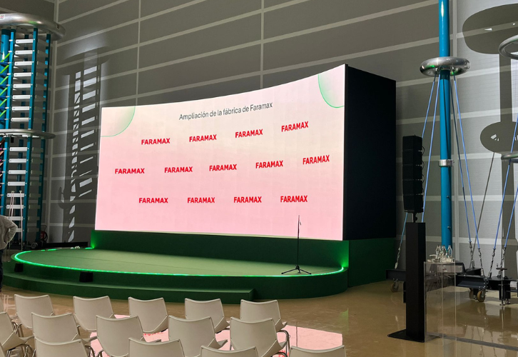 La semana pasada estuvimos en Malpartida de Plasencia de la mano de MV Group, para la presentación de la ampliación de la planta de Faramax. Montamos la pantalla ABSEN de 10×4 con control de vídeo Novastar H-5, y también nos encargamos de la sonorización del espacio mediante equipo TW ELLA.